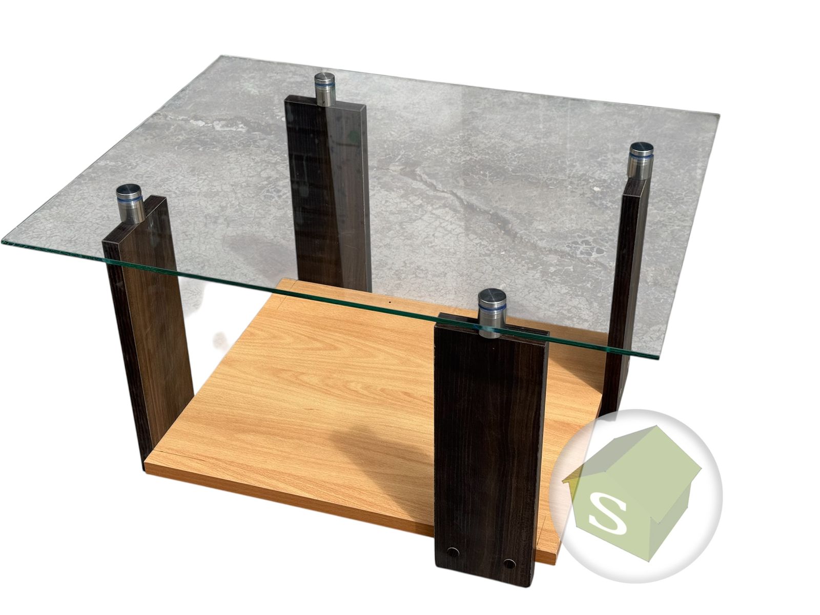 Mesa de centro de melamina de 18mm con vidrio de 5.5mm + soportes de acero inoxidable